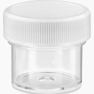 Add Clear Round Wide Mouth Plastic Jars 20ml White Cap 30090 to the cart